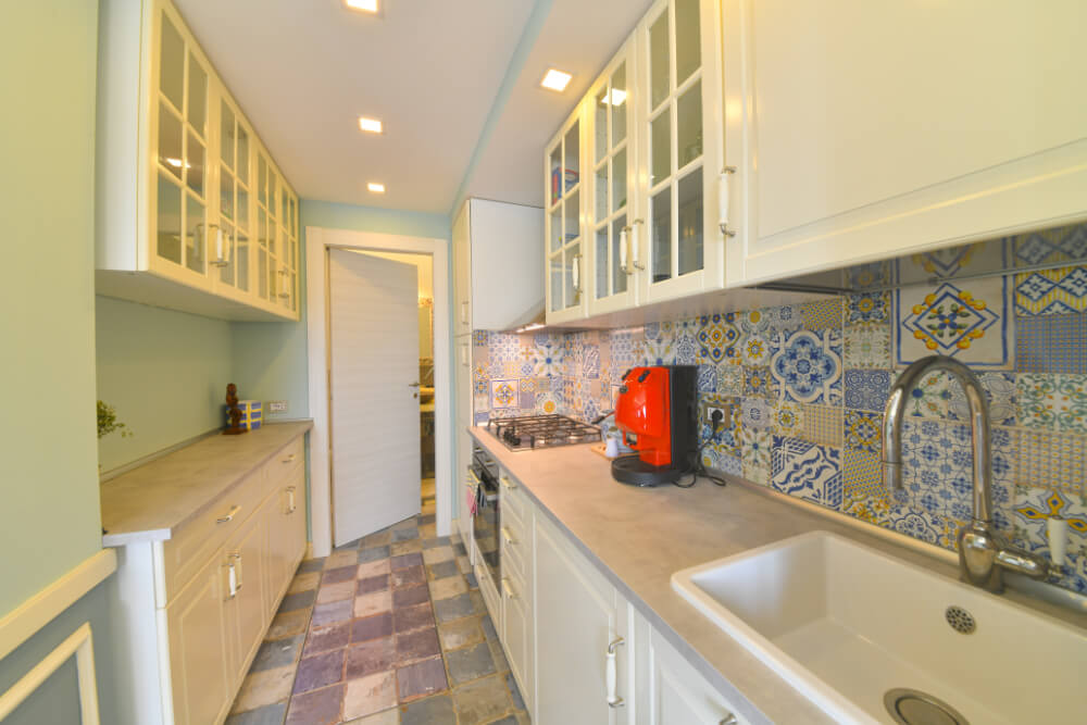 The fully equipped kitchen, with stovetop, refrigerator, oven, and kitchenware, provides the freedom to prepare meals independently, making your stay even more convenient and personal.